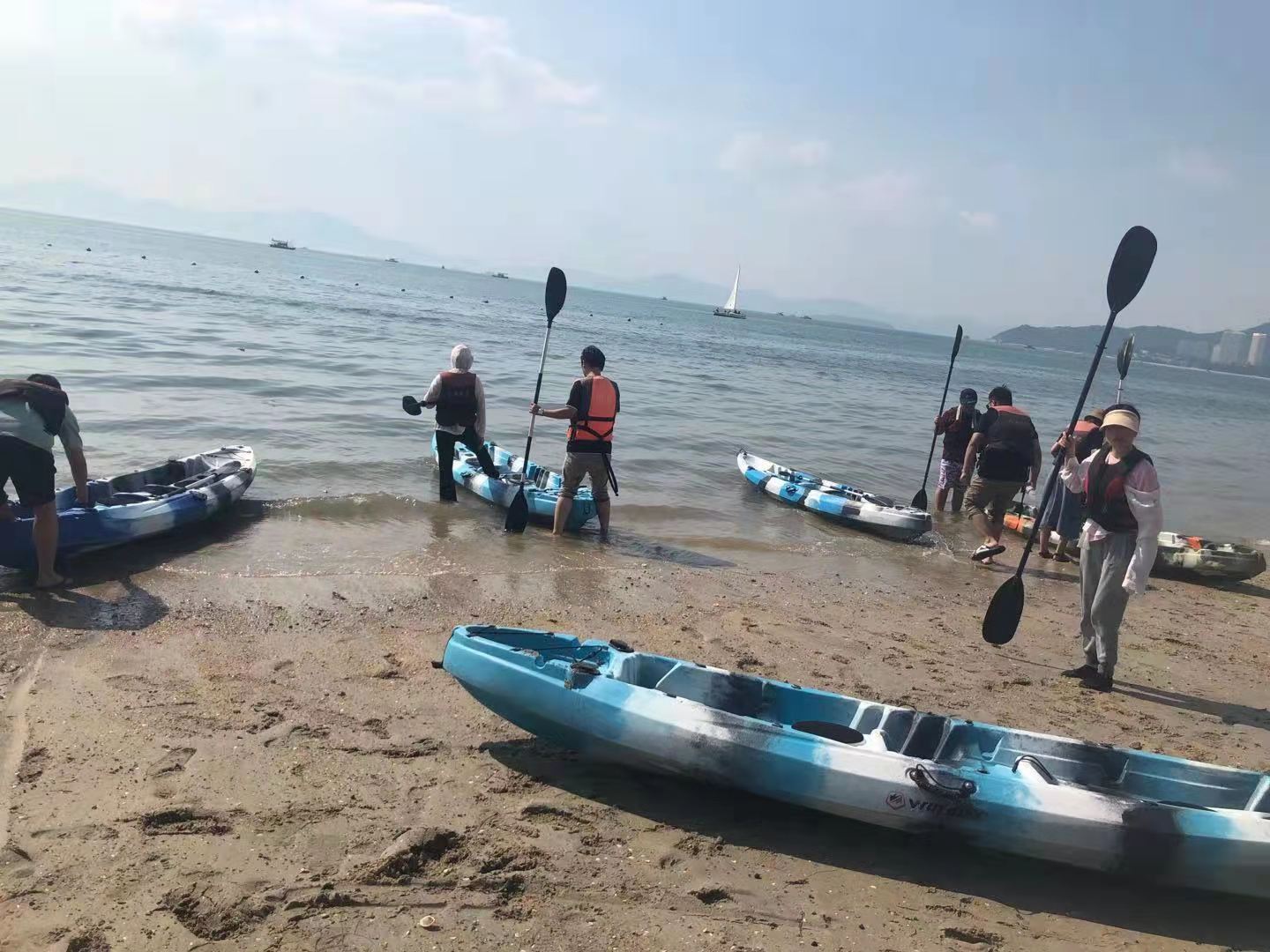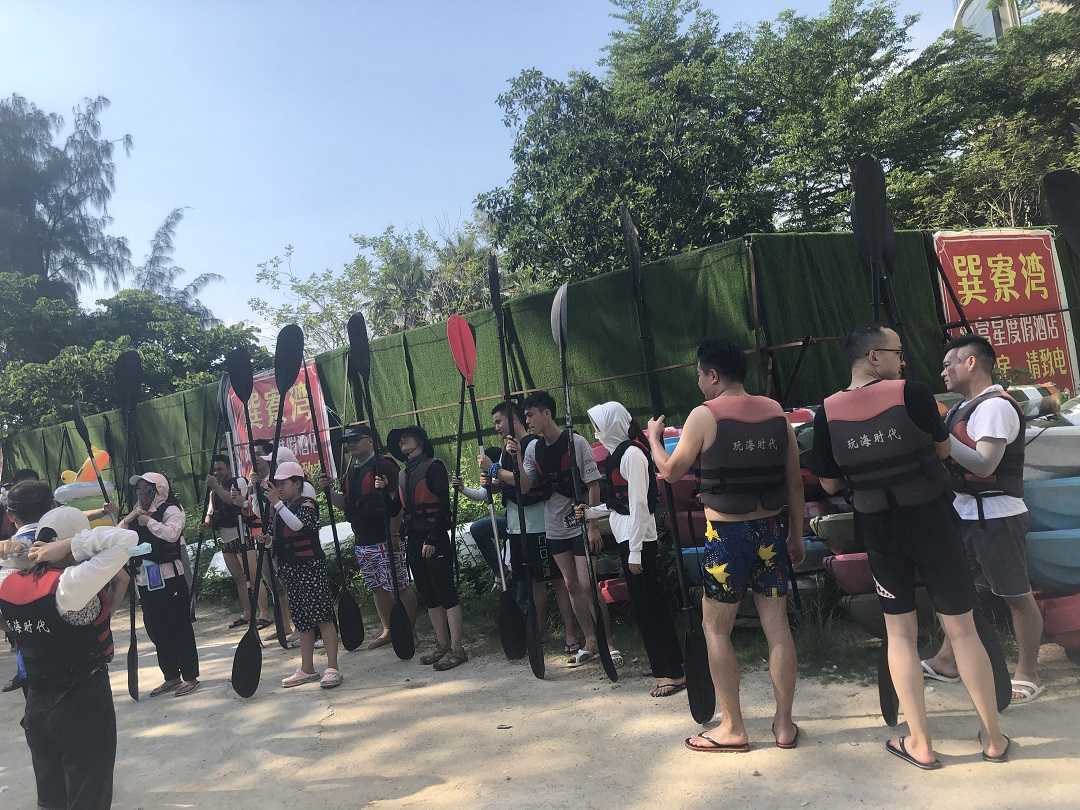 在体验过越野车体验的刺激快感后,我们继续往出海皮划艇项目,这是一场考验毅力又让人惊心动魄的极限挑战。皮划艇两人一组进行,体验划船乐趣的同时还能提升队员划船中的配合,大家由开始的不太协调逐渐到配合默契力往一处使,体现出我们本次团建的口号“扬团队之帆,铸金航标之舰”!希望我们金航标公司这艘大船能够带领大家奔向诗和远方实现梦想!