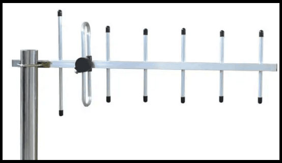 4.八木天线,八木天线属于较高增益的定向天线,是由一个有源振子(一般用折合振子)、一个无源反射器和若干个无源引向器平行排列而成的端射式天线,由日本东北大学的八木秀次和宇田太郞两人发明,所以叫八木天线。八木天线的单元数越多,其增益越高,通常采用6~12单元的八木定向天线,其增益可达10~15dB。具有增益较高、结构轻巧、架设方便、价格便宜等优点。八木天线适用于点对点的通信或者将室外信号引入到室内,是室内分布系统室外接收天线的首选,比如某区域室内手机信号特别弱希望改善,一般都选用八木天线。