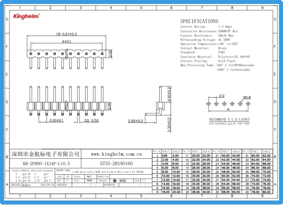 Kinghelm金航标KH-2PH90-1X34P-L10.5规格书