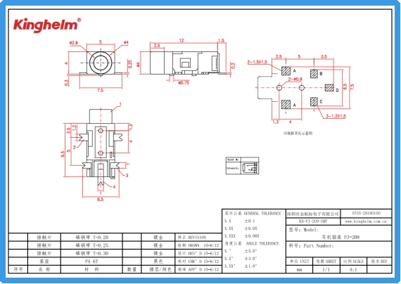 Kinghelm金航标KH-PJ-209-SMT规格书