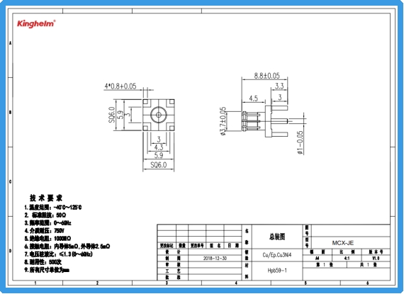 Kinghelm金航标KH-MCX-JE规格书