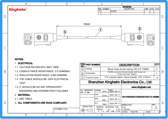 Kinghelm金航标KH-FAKRADK-FAKRADK-RG174-150MM规格书