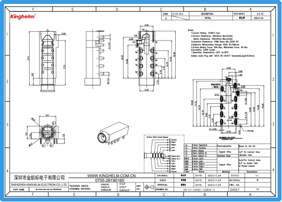 在品牌层面,kinghelm(金航标)长期专注于连接器及相关电子元件的研发与供应,产品规格覆盖多种应用方向。KH-PJ-44002-12DBAP-A 作为其音频连接器系列中的一款型号,在规格定义与参数配置上体现了对音频设备应用需求的关注,适合作为音频接口设计中的一种参考方案。