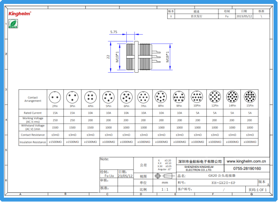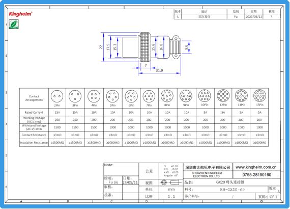 Kinghelm金航标KH-GX20-6P规格书