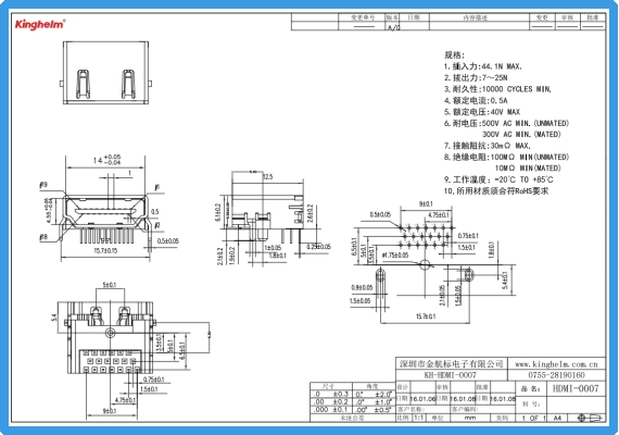 Kinghelm金航标KH-HDMI-0007规格书