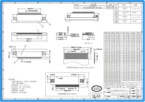 Kinghelm金航标KH-CL0.5-H1.2-18PS-SMT规格书