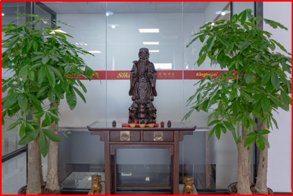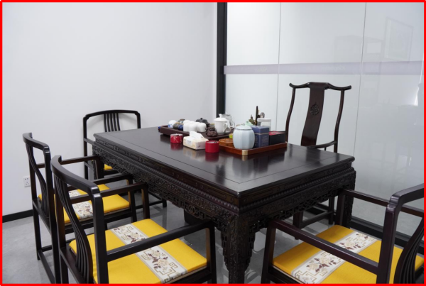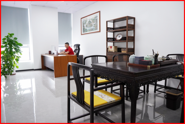 中堂,承载中国人的家庭文明与道德传统,是厅堂中最为尊贵的位置,中堂待客代表尊贵礼遇、宾至如归。明式红木的案、几、椅,是简约实用的有力表达,总经理宋仕强说道“金航标和萨科微致力于打造简单和谐、高效进取的工作氛围,希望同事们开心工作好运连连。”北齐最美佛像头,京作(原清宫造办处)工艺,来自宋仕强先生老家四川的汉白玉质地白净细腻,摆放在总部中堂的案子上,为办公空间带来静谧与禅意。
