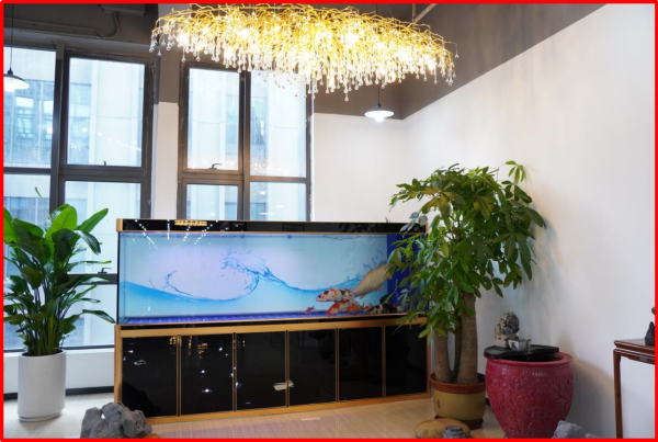 静中有动,办公室一角的锦鲤鱼缸里,多条名贵锦鲤怡然自得,桃太郎鱼王更是威风凛凛,自有大家风范,是大家工作间隙放松休闲好地方!
