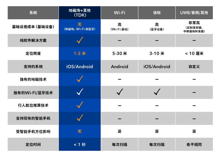 室内定位有若干种方法,但地磁学通过与惯性导航×4的紧密结合,在精准度、可靠性以及开发和维护成本之间实现了最佳平衡。