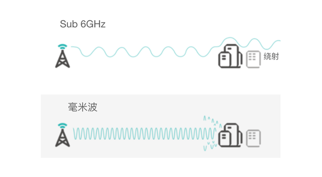 毫米波的优势是带宽大、容量高,但由于其频率高,波长短,自由空间传播损耗、穿透损耗和绕射损耗大,导致单小区覆盖范围很小。实测显示,即使终端处于视距(LoS)环境,毫米波小区的覆盖范围不过100米左右,几乎与Wi-Fi覆盖范围差不多。与sub 6GHz相比,毫米波绕射能力越差,穿透能力越差,难以穿透墙壁、门和房间家具等障碍物。因此,在城区建筑物密集场所,运营商需要建设更多的基站,并保证基站与终端处于视距状态,才能实现稳定高速的通信。