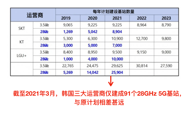 然而,尽管韩国3.5GHz 5G网络建设如火如荼,但28GHz 5G建设非常缓慢,截至2021年3月,韩国三大运营商总计建成了仅91个28GHz 5G基站,与原计划相差甚远。
