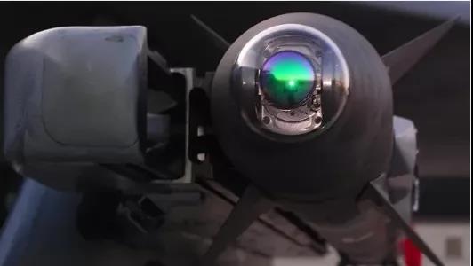 2020年7月,英国近距格斗空空导弹(ASRAAM)交付英国皇家空军服役,该导弹导引头采用128×128元碲铟汞凝视焦平面红外成像导引头(图1),为世界首创。焦平面阵列器件工作在3~5 μm波段,安装在万向支架上,导引头离轴角高达±90°,而且其光学组件的跟踪角速度高达800°/s。整个导引头被安装在蓝宝石头罩内,这种材料不易剥蚀,耐冲击性能好。该导引头采用机械斯特林致冷器。这种致冷器在作战任务中没有时间限制,可使导引头连续工作很长时间。