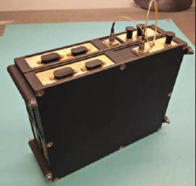 利用里德堡原子的能级跃迁,可以实现不同于经典电磁感应的微波场高精度测量,已在量子精密计量领域实现了初步应用。2020年,里德堡原子公司推出用于AM和FM无线电通信的里德堡原子接收机(图5),可通过光学手段对无线电信号进行采样和解调;接收器中不包含电子元件,且可有选择地或同时接收从兆赫兹到毫米波频带中的电磁波信号。此外,该公司研究人员还验证了里德堡原子接收器对电磁脉冲以及电磁波相位信息的检测能力,未来有望应用于微波量子雷达系统。