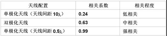 中国移动于2008年7月对不同天线配置的相关系数进行了测试,具体的相关系数见下表: