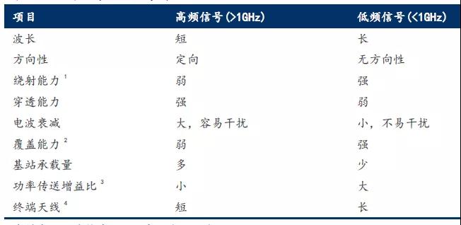 无线电电波的高频与低频是个相对的概念,两者由于传输特性的不同有不同的适用场景。一般来讲,低频信号波长长,电波衰减小,传输中易产生散射和绕射,适合做网络覆盖。高频信号频点多,信息传输速率高,需要的天线尺寸更小,容易做到大功率发射。根据ITU研究表明,移动通信使用的最佳频谱位于400MHz-6GHz范围内。