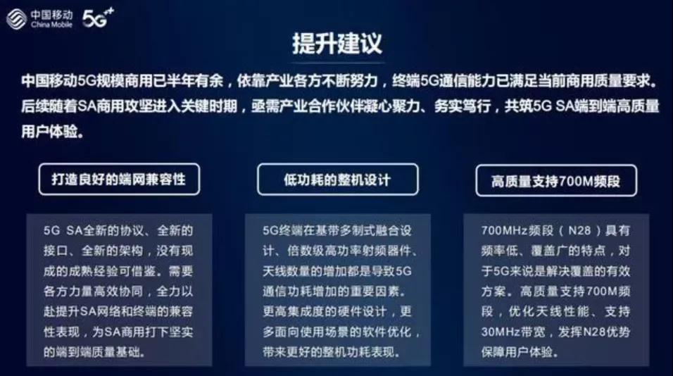 中国移动发布《中国移动5G通信指数报告(第二期)》,提出5G手机要高质量支持700M频段。