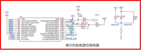萨科微单节锂电池保护DW03。DW03包含了功率 MOSFET,高精度的电压检测电路和延时电路,广泛应用于小家电类产品,在图上所示的剃须刀应用电路,通过USB Type-C供电给单节锂电池充电,在充电时候单片机的ADC IO口采集充电电压并在数码管显示电池的电量,充电电路由萨科微SL4056充电管理和简单的外围电路搭建。在电机驱动部分采用萨科微3400mos管,并由单片机IO口采集按键信号来控制电机开和关,DRV为栅极驱动信号,当单片机检测到按键按下去的信号DRV输出高电平此时剃须刀开始转动。