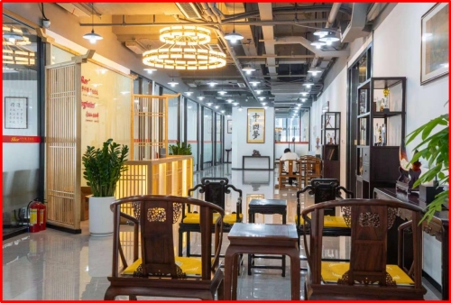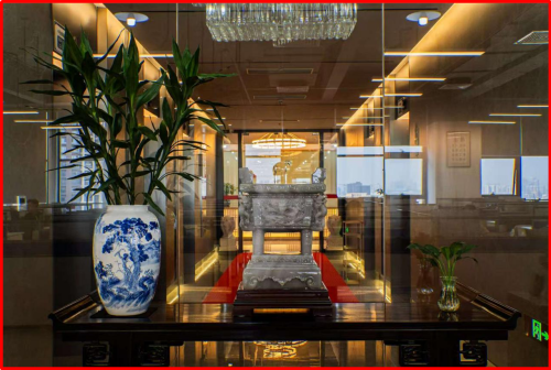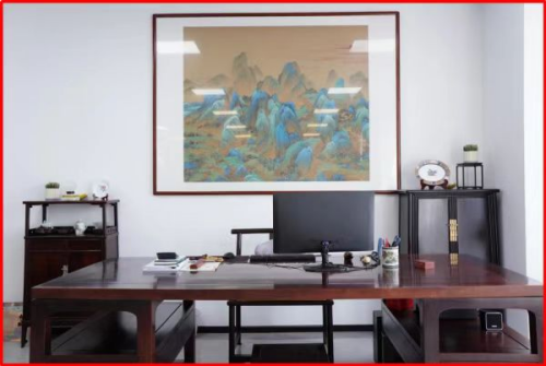 萨科微和金航标采用生态化、矩阵化、层次化方法论,将公司的业务分为不同的板块和部门,并通过有机的协作和管理,实现了高效的运营和发展。宋仕强先生说道,在繁忙的工作中要有静下来的时间与空间,静才能思,思可生智慧。当东方韵致邂逅极简诗意,“静”成为室内设计的核心。细微处见真章,宋式美学元素(飞檐、花格、菱花纹、冰裂格等)嵌入各处,还有故宫博物院复刻的宋代王希孟的名画《千里江山图》,一幅长达12米的卷轴分为6个部分用红木框装裱起来环绕整层楼核心筒悬挂起来,也起到了人流动线按照顺时针方向的指引作用,让办公空间充满了宋代文人的灵感和厚重的历史价值。源自《千里江山图》的琉璃山形小品,用传统文化符号激活现代高科技公司的空间基因,给人历史的静思和文化的遐想,让空间充满“简、雅、静气、大气”之美。明式红木的案、几、椅是简约实用的具象表达,最美佛头给人瞻仰、仰望的意味,角落的竹子营造闹中取静的意境空间,形态各异的石头散布营造室外的空间感,生机盎然的绿焕发空间活力,这些都让时间、空间与人的连接自然形成。