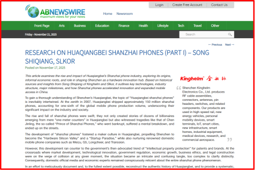 宋仕强论道之《“华强北山寨手机”研究(上)》英文版荣登ABN Newswire(亚洲财经新闻)