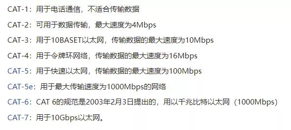 我们现在常用的千兆网络网线是超五类和六类线,超五类是 2001 年出现的,而六类线的规范则是 2003 年。