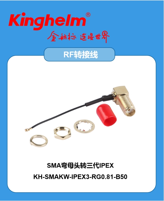 Kinghelm金航标不仅提供 SMA弯母头转IPEX转接线 等高精度线缆组件,还自主研发和生产多种 SMA系列射频连接器与配套组件,满足从天线端到主板端的全链路连接需求。