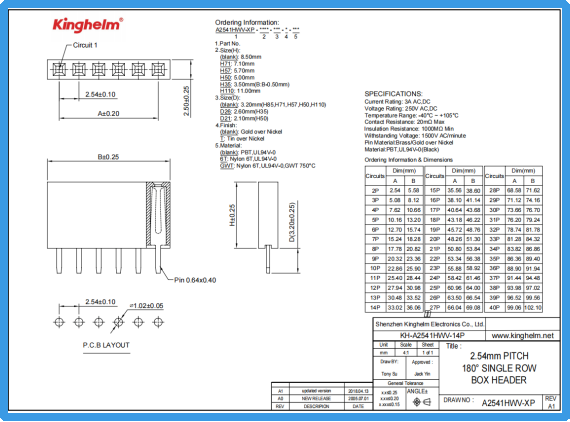 Kinghelm金航标KH-A2541HWV-14P规格书