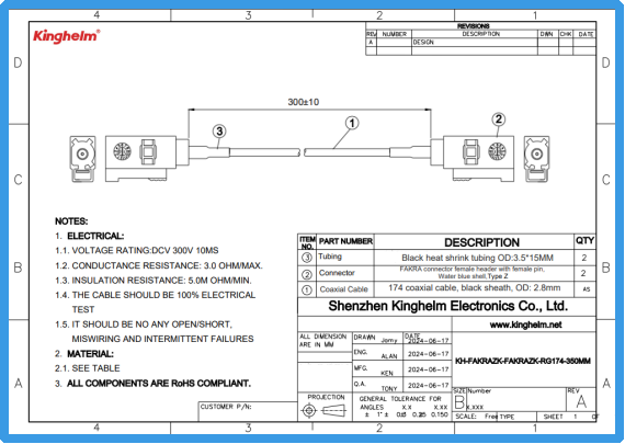 Kinghelm金航标KH-FAKRAZK-FAKRAZK-RG174-300MM规格书