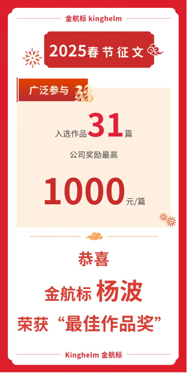 NO.6:金航标2025年度春节征文圆满结束 销售总监杨波荣获“最佳作品奖”