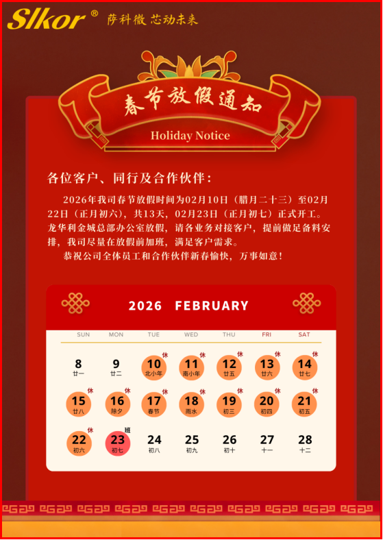 萨科微2026年春节放假通知