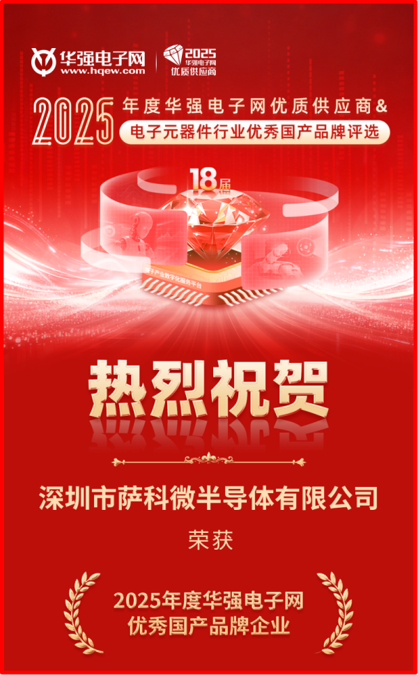 萨科微半导体连续多年荣膺“华强电子网优秀国产品牌企业”