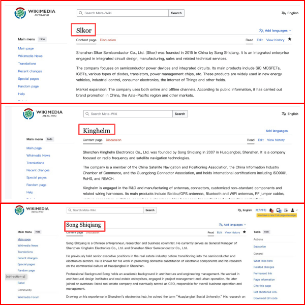 3、金航标kinghelm、萨科微Slkor(www.slkormicro.com)及宋仕强Song Shiqiang词条被维基百科收录,成为公司品牌国际化进程中的重要里程碑。