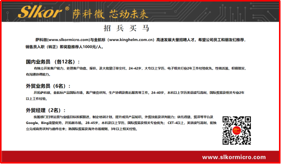 萨科微半导体广纳贤才,外贸经理、国内业务员等热招中!