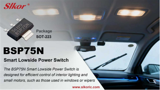 萨科微BSP75N可用于控制车内照明和小型机电国际: