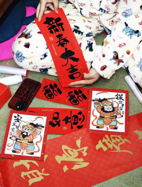 年廿八、廿九或三十,家家户户撕下旧春联,贴上新的门神、窗花、年画,门口挂起红灯笼,整个家都被喜庆包围。贴春联不仅是装饰,也是辞旧迎新最主要的的仪式之一——红纸黑字之间,写满了人们对来年的期盼:平安、富贵、顺遂、安康。从老家到城市,这份习惯一直在我们生活里延续着。