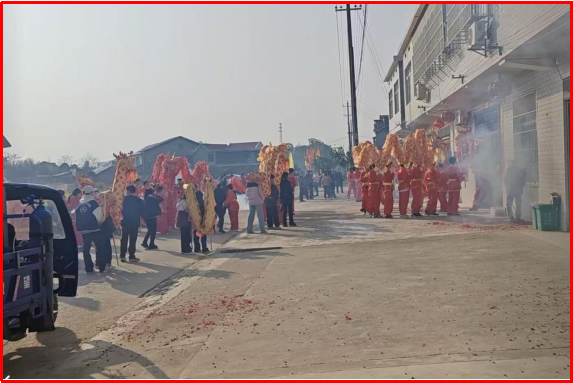 除夕夜里,我们桂林村有个特别热闹的习俗——小孩挨家挨户去辞岁。孩子们穿着新衣,结伴走家串户说吉祥话,恭喜过红年,家家户户都会拿出小红包、糖果和小零食分给他们,欢声笑语洒满整个村庄。过年的时候,我们走亲访友,有吃不完的饭,村里到处都有耍狮舞龙,夜晚也有火龙和唱花灯,这些都是刻在骨子里的童年年味。