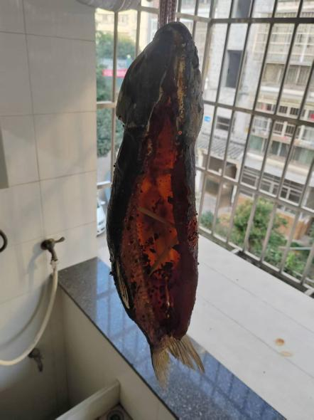 第三日,我把鱼挂在阳台的竹竿上。西充的冬天干燥少雨,阳光虽不炽烈,却足够让鱼肉缓慢脱水。我每日观察它的变化:表皮渐渐收紧,颜色由银白转为深褐,油脂在表面凝结成细微的晶霜。腌鱼的第十天,我取下它,蒸了一小块尝鲜。肉质紧实,咸香中透着花椒的微麻,是对我这十来天的期盼最好的回应。