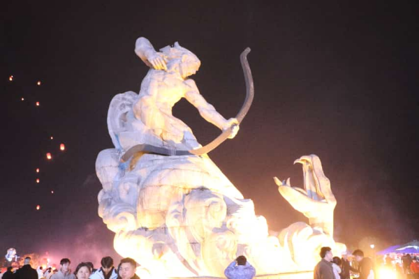 巴陵广场:后羿射巴蛇与市井年味的交响