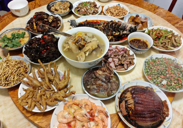 满满一桌子年夜饭端上桌,全都是老爹亲手做的。有香喷喷的红烧肉、软糯入味的蒸菜、酥脆的炸丸子,还有我们一起包的饺子。每一道菜都饱含着爸妈的心意,香气扑鼻,让人看着就直流口水。我们一家人围坐在一起,边吃边聊,孩子的嬉闹、爸妈的唠叨,一起分享着一年里的趣事和收获。饭菜很香,可身边亲人的陪伴,更让我觉得温暖。