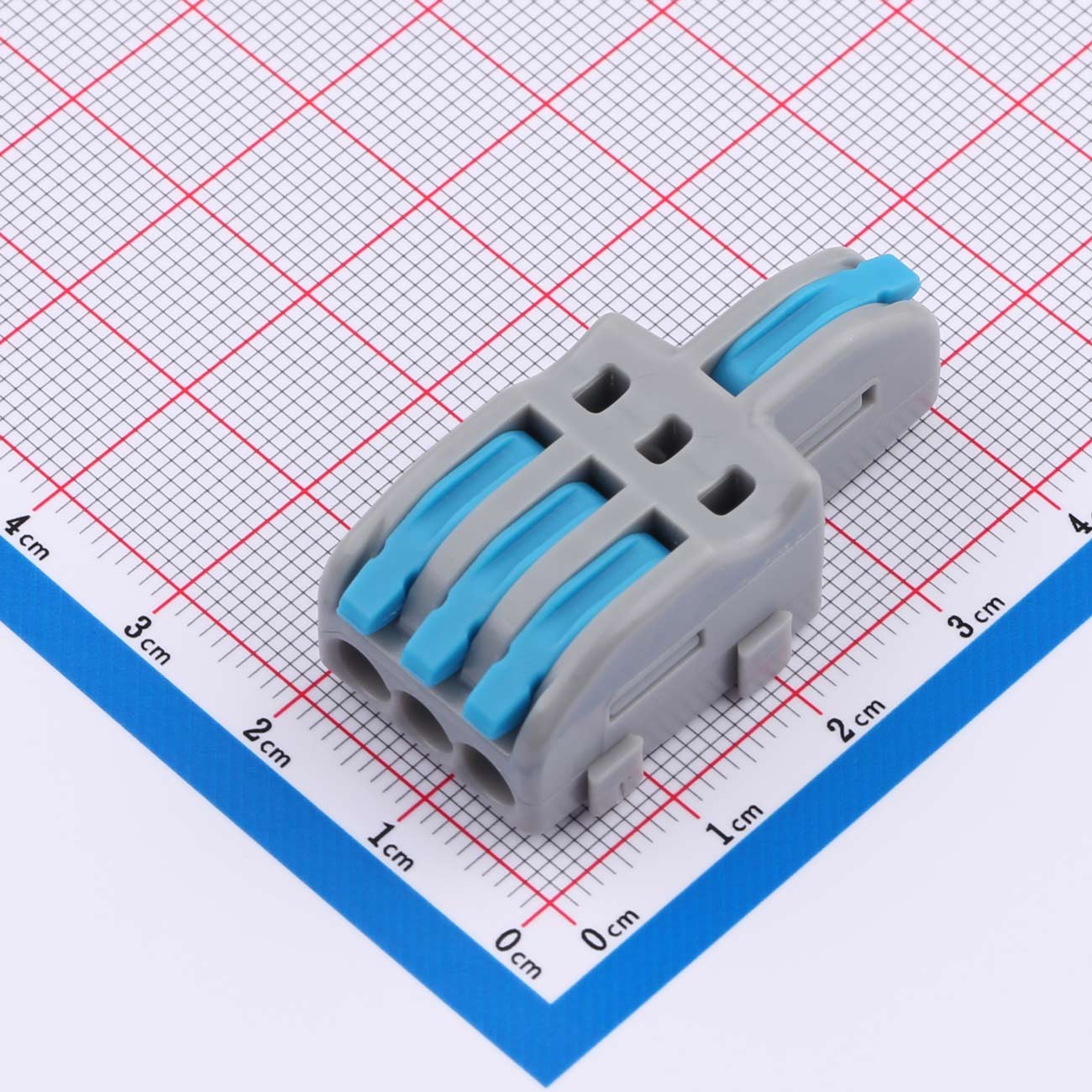 产品概述:这是一款一进三出蓝色的快速连接式接线端子,适用于快速、安全地连接电线,支持广泛的电压和电流范围。